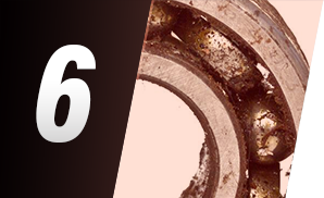 L’inscurimento di un grasso spesso indica ossidazione, contaminazione da detriti del cuscinetto, o surriscaldamento. In casi estremi, un’alta tensione o una scarica elettrostatica all’interno dei cuscinetti possono causare danni da arco elettrico, identificabili visibilmente come scanalatura o vaiolatura.