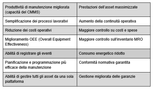 Quando ti trovi a determinare se hai bisogno di una soluzione EAM o se dovresti aggiornare il tuo sistema attuale, considera quale dei seguenti vantaggi è più importante per la tua azienda: